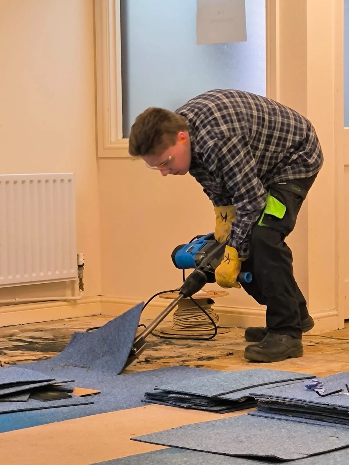 This open plan office, was looking a little dated and in need of freshen up, we removed the carpet tiles (it was hard work) painted, new lighting, new carpet tiles, ready for the Café Stools and Table.